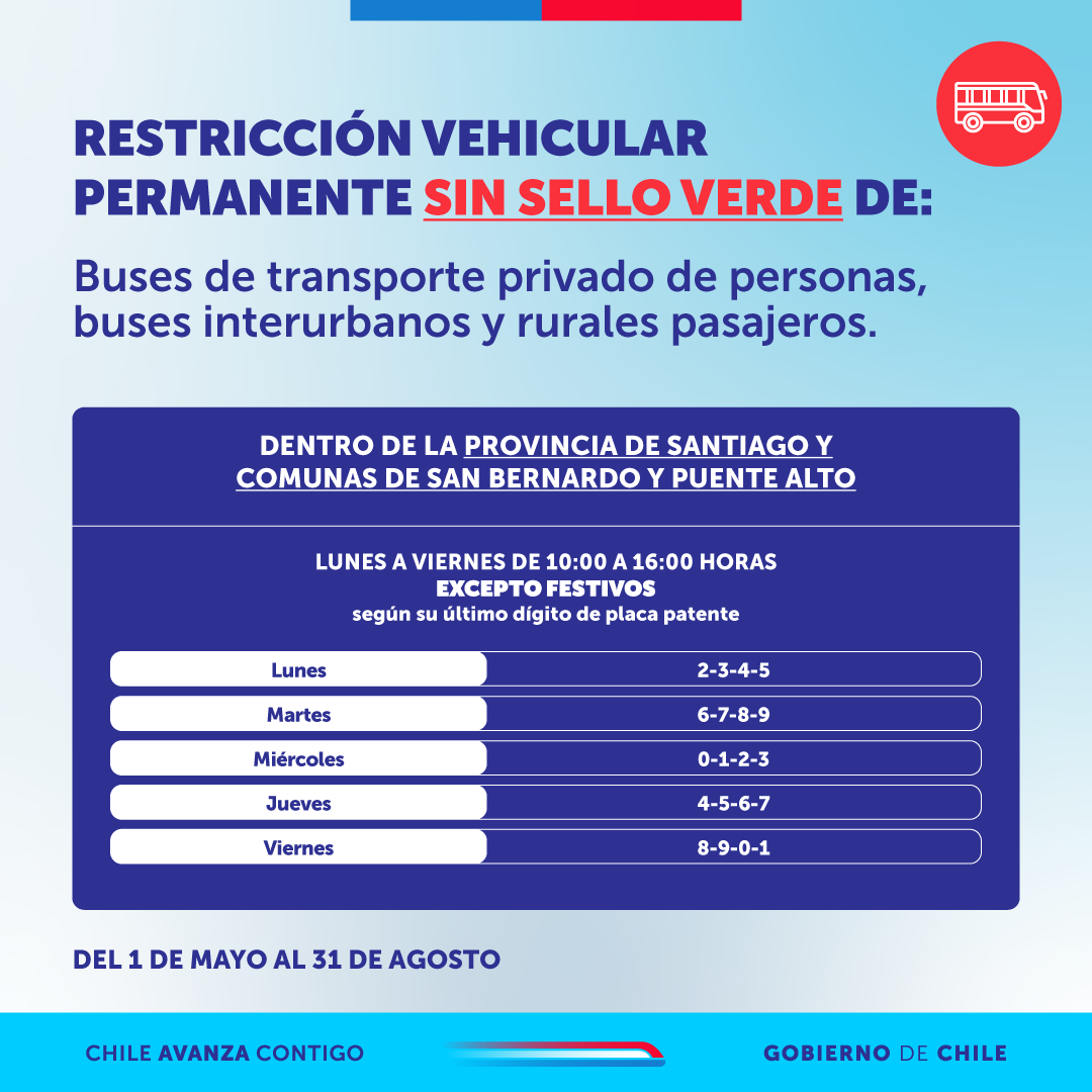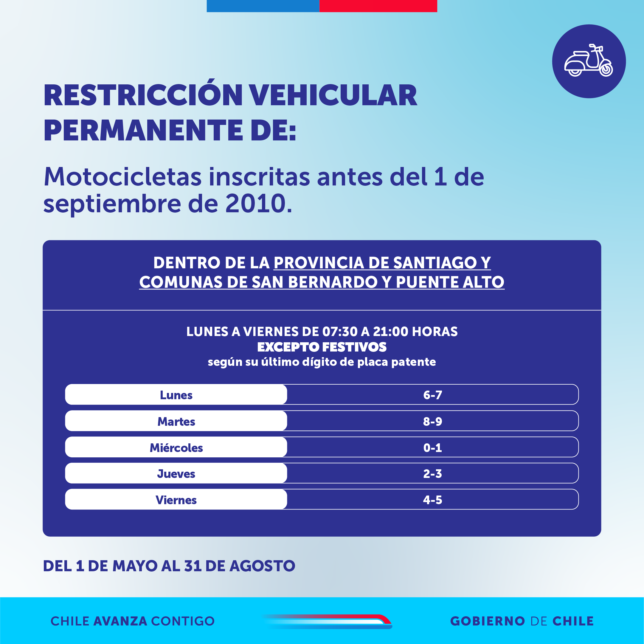 Es importante destacar que la restricción rige en toda la Provincia de Santiago además de las comunas de San Bernardo y Puente Alto.