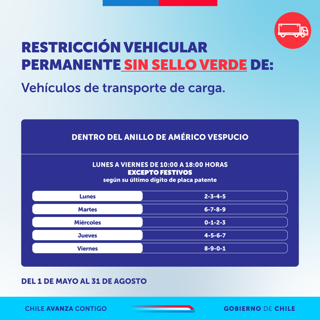 Adicionalmente, estarán sujetos a restricción los vehículos sin sello verde y motocicletas de años anteriores a 2002; buses de transporte privado, buses interurbanos y rurales sin sello verde; y vehículos de transporte de carga sin sello verde  (también incluye a camionetas).