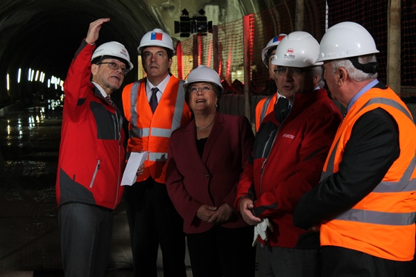 Presidenta Bachelet inspecciona el avance de las obras de las Líneas 3 y 6 en la estación Ñuñoa