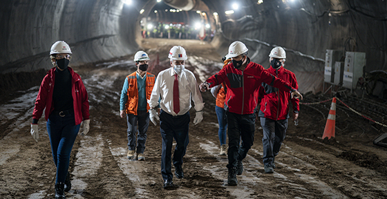 Presidente Sebastián Piñera visita obras de la extensión de línea 3 de metro a Quilicura: ya tiene 33,5% de avance y se inaugurará en 2023