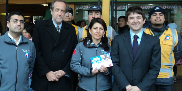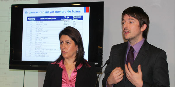La jefa del Programa de Fiscalización del Ministerio de Transportes y Telecomunicaciones, Paula Flores, junto al Gobernador provincial, Pedro Bahamondez,…