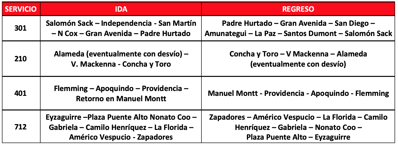 Línea 4 entre Plaza Puente Alto y Tobalaba: con detención en Cristóbal Colón, Francisco Bilbao, Príncipe de Gales, Simón Bolívar, Plaza Egaña, Los Orientales, Grecia, Los Presidentes, Quilín, las Torres, Vicuña Mackenna, Vicente Valdés, Rojas Magallanes, Sótero del Río, Las Mercedes y Plaza de Puente Alto. Se mantienen cerradas Macul, Trinidad, San José la Estrella, Los Quillayes, Elisa Correa y Protectora de la Infancia.
