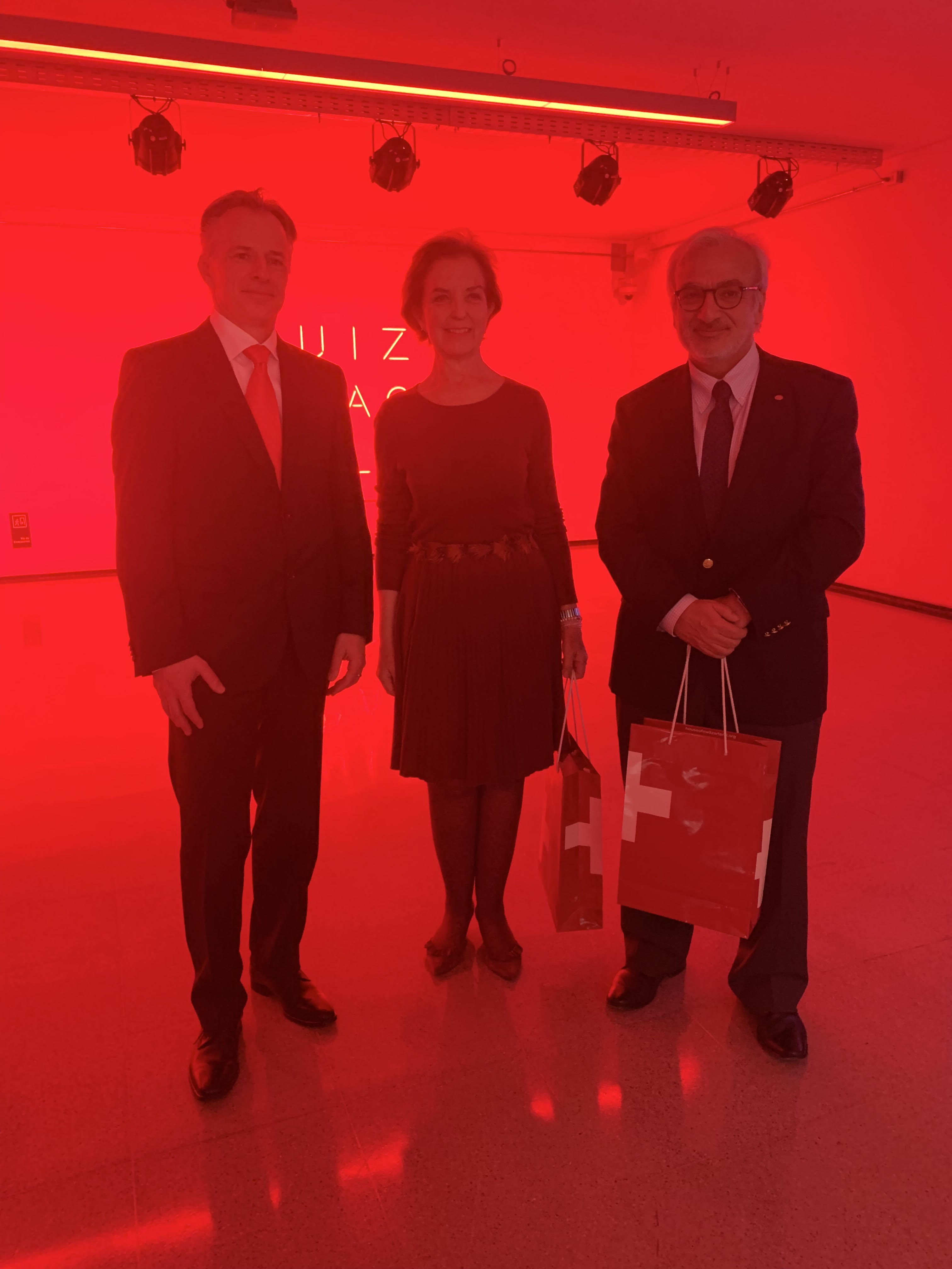 La Ministra de Transportes y Telecomunicaciones, Gloria Hutt; el gerente general de Metro, Rubén Alvarado; y el Embajador de Suiza, Arno Wicki, dieron esta mañana el puntapié inicial al proyecto Suizspacio, que busca fomentar el intercambio cultural entre Suiza y Chile a través de la creación de un moderno espacio de exhibición que servirá como punto de encuentro entre ambos países.