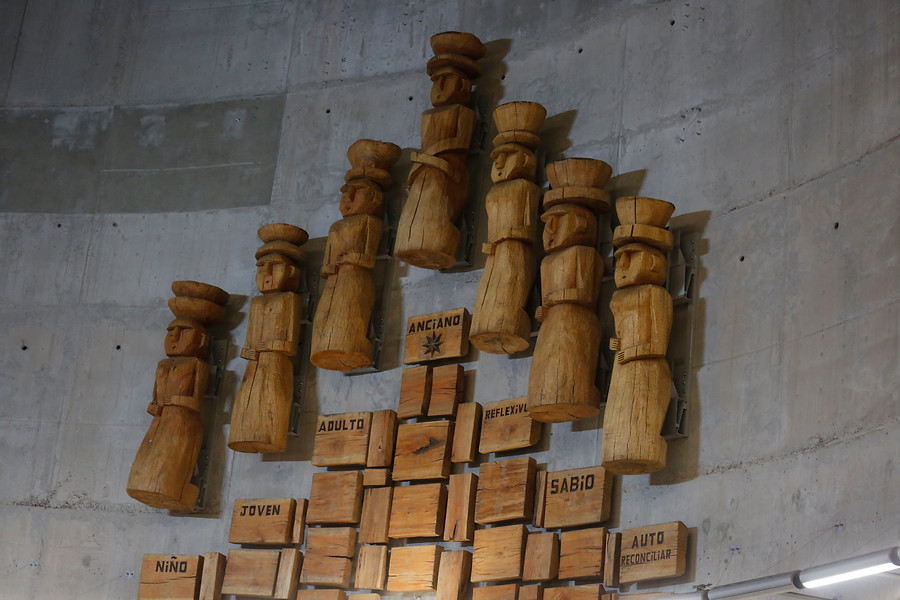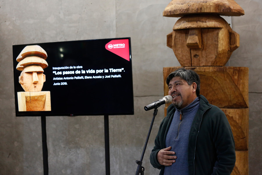 Para celebrar el Año Nuevo Mapuche o We Tripantu, esta mañana la Ministra de Transportes y Telecomunicaciones, Gloria Hutt; la Ministra de las Culturas, las Artes y el Patrimonio, Consuelo Valdés; y el presidente del directorio de Metro de Santiago, Louis de Grange, inauguraron la obra “Los pasos de la vida por la Tierra”, compuesta por once impresionantes chemamülles de madera nativa tallados a mano por el escultor mapuche Antonio Paillafil con la colaboración de su hijo, Joel Paillafil Rojas, y de la artista argentina Elena Acosta.