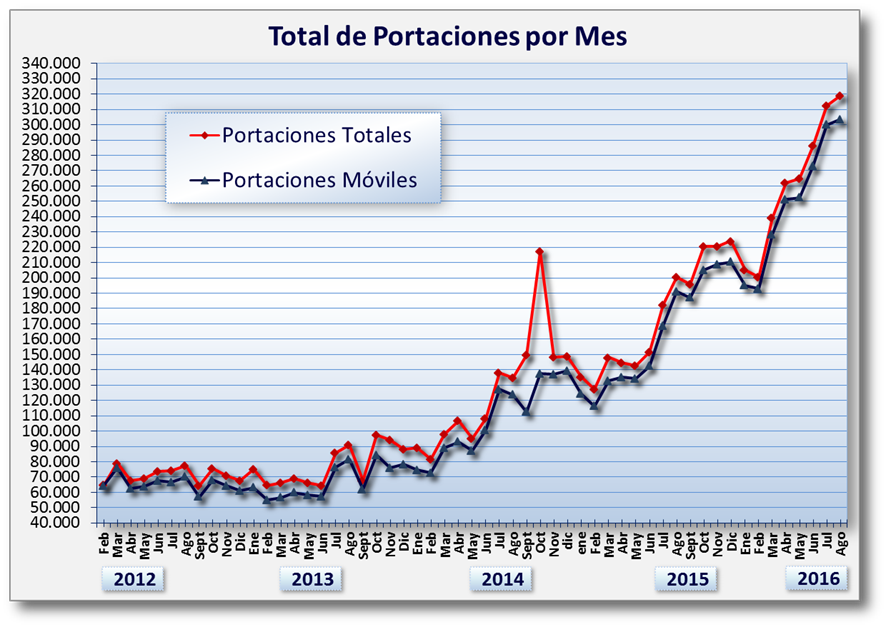 Durante el anuncio del inicio de portabilidad completa, las autoridades entregaron las cifras de portabilidad correspondientes al el 31 de agosto de 2016, las que muestran una clara tendencia al alza con más de siete millones de portaciones (7.427.189). De hecho, agosto de 2016 ha sido el mes con la mayor cantidad de portaciones desde el inicio del sistema con 318.605 cambios de compañía, superando la cantidad de cambios que se registraron en julio (311.962) y aumentando en 118.287 el número de portaciones en comparación a agosto de 2015.