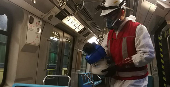 Desde el comienzo de la pandemia, Metro de Santiago ha realizado procesos de sanitización en trenes, estaciones y dependencias de trabajadores. El plan de higiene considera el reforzamiento de la limpieza diaria con amonio cuaternario -un compuesto antiviral utilizado en recintos hospitalarios- en las superficies de contacto prioritario de trenes y estaciones como pasamanos, manillas, asientos, torniquetes, tótems de recarga de tarjeta, teclado de ascensores y cajeros automáticos, así como en dependencias de uso de los trabajadores. En forma paralela, a este proceso de limpieza diaria, desde abril se sumó un método de sanitización de trenes por medio de biotecnología.