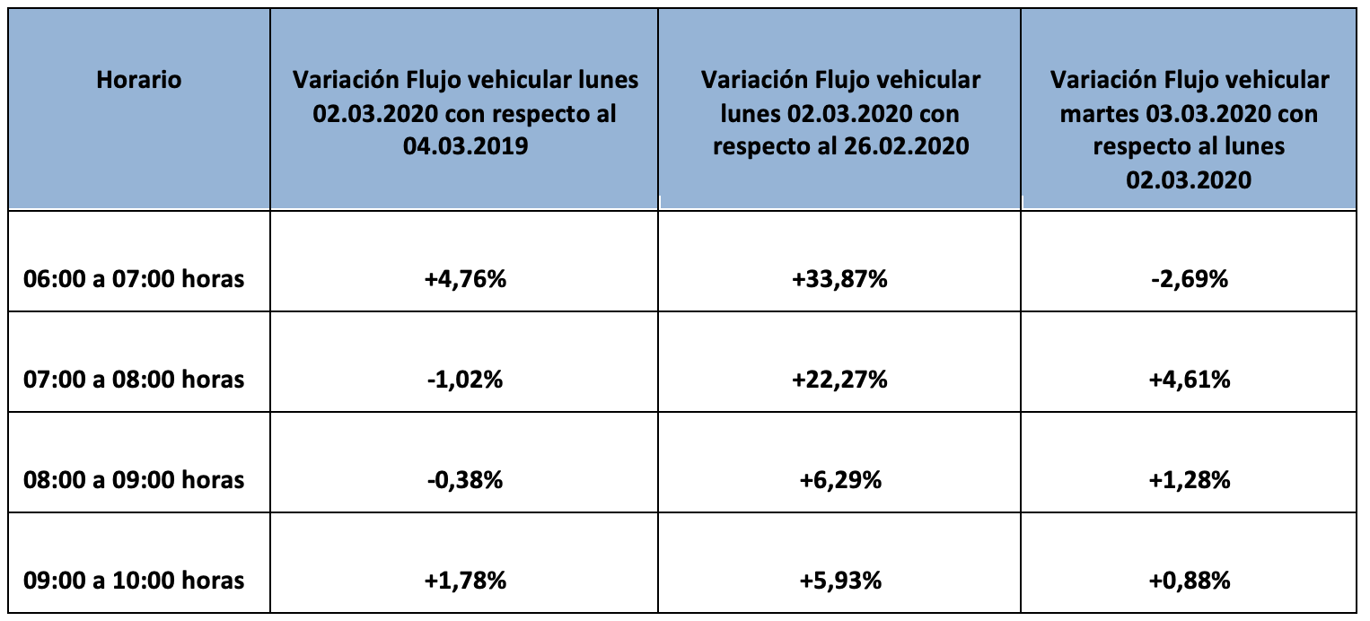 Con respecto a los flujos vehiculares, se detalla lo siguiente: