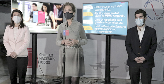 Ministra Gloria Hutt dio a conocer un video con recomendaciones que se exhibirá a bordo de los buses interurbanos y estableció un nuevo protocolo que agilizará los controles en el Aeropuerto Arturo Merino Benítez de Santiago.