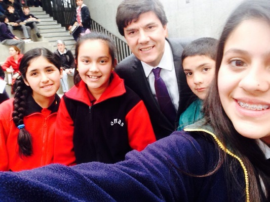 Al igual que Andrés Gómez-Lobo, otros 14 ministros se desplegaron por todo el país, de Arica a Punta Arenas, para dar inicio a la entrega de los primeros computadores a los niñas y niñas de séptimo básico. La ceremonia oficial la encabezó la Presienta de la República, en la Escuela Santa Adela, de la comuna de Cerrilos, Región Metropolitana.
