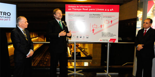Los más de 470 mil pasajeros que se transportan diariamente a través de las Líneas 4 y 4A de Metro de Santiago cuentan desde hoy con una nueva herramienta para informarse sobre su viaje, ya que el tren subterráneo implementó un sistema de información en tiempo real en las 171 pantallas de MetroTV ubicadas en andenes.