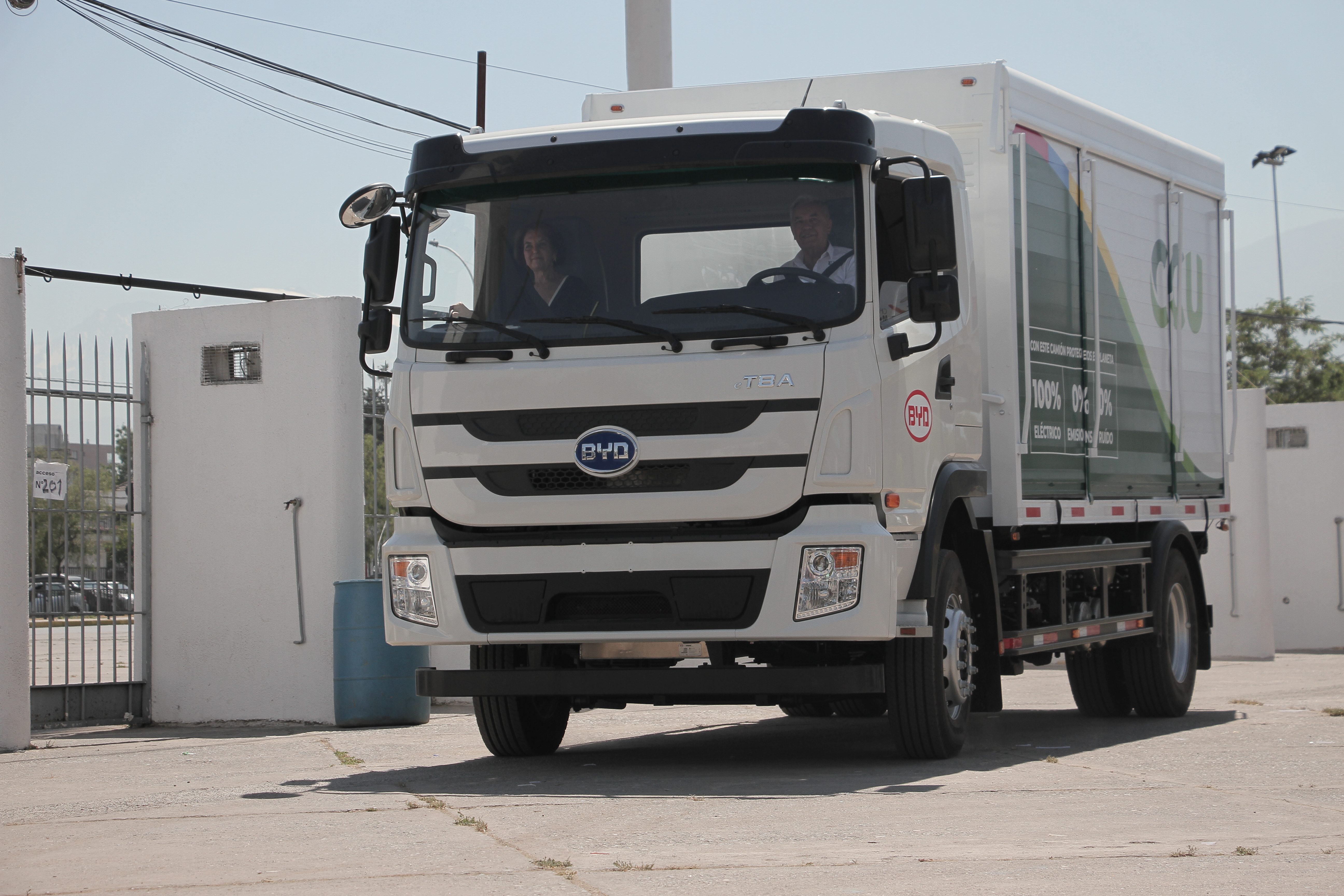 La Ministra de Transportes y Telecomunicaciones, Gloria Hutt, presentó esta mañana el primer camión eléctrico de alto tonelaje que comenzará a operar en Chile desde esta semana. El vehículo cuenta con una capacidad de carga de 13 toneladas, una autonomía de hasta 200 kilómetros y necesita tres horas para cargarse por completo. El camión, de marca BYD, alcanza una velocidad máxima de 85 kph y pertenece a la flota de la empresa CCU.