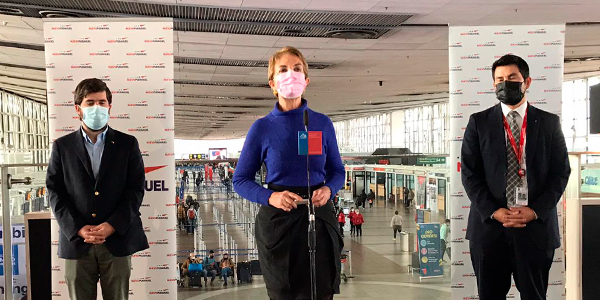 Este lunes entró en vigencia el Plan Fronteras Protegidas, que establece mayores libertades de movilidad, con medidas de contención y estrategias para el control de la pandemia. En ese contexto, la Ministra de Transportes y Telecomunicaciones, Gloria Hutt, y el Secretario General de la Junta de Aeronáutica Civil, Martín Mackenna, monitorearon el funcionamiento del Aeropuerto de Santiago en la primera jornada de funcionamiento de las nuevas disposiciones sanitarias.