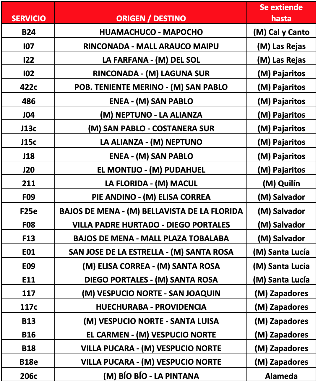 En total son 9 servicios que permitirán a los usuarios de las comunas de Puente Alto, La Florida, La Cisterna y Maipú tener mayores alternativas para llegar a las estaciones de Metro que están operando.