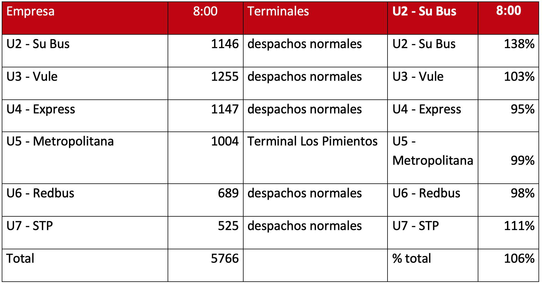 Coquimbo: Flujos normales en La Serena y Coquimbo. Transporte público opera con en hora punta mañana. Fiscalización se encuentra apoyando el despeje de vías en pistas prioritarias para transporte público y en estacionamientos exclusivos para transporte escolar.