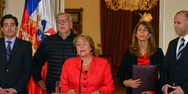 Junto a los ministros del Interior, Rodrigo Peñailillo; de Defensa, Jorge Burgos; de Secretaría General de la Presidencia, Ximena Rincón; y de Secretaría General de Gobierno, Álvaro Elizalde, la Presidenta de la República, Michelle Bachelet, firmó el decreto que establece el Estado de Excepción Constitucional de Catástrofe para las regiones de Arica y Parinacota, y Tarapacá. Ella misma explicó que “esta noche se trasladan a la zona el Brigadier de Ejército Miguel Alfonso Bellet, a la zona de Arica y Parinacota, y el General de Aviación Arturo Bernardo Merino Núñez, a la Zona de Tarapacá, para tomar el mando del orden público y evitar situaciones de saqueo y de desorden, junto con colaborar con la autoridad de la zona en las labores de ayuda que ya han comenzado”.