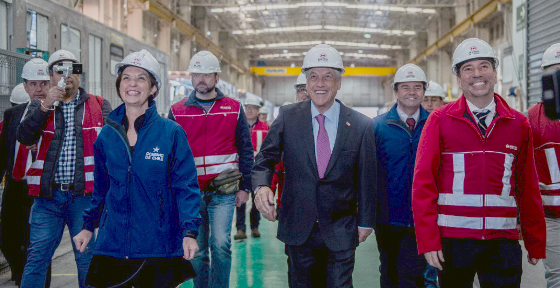 Un recorrido por las instalaciones del Taller Neptuno, en Lo Prado, realizó esta mañana el Presidente de la República, Sebastián Piñera, junto a la ministra de Transportes y Telecomunicaciones, Gloria Hutt; y el presidente de Metro, Louis de Grange, para inspeccionar el proceso de montaje de los primeros trenes armados en Chile, para el tren subterráneo de Santiago.
