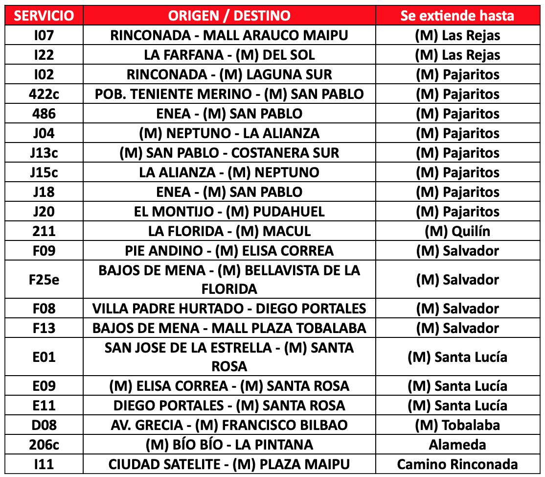 A ellos se suman para esta tarde 21 extensiones de recorridos: