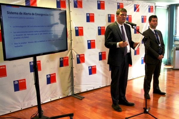 En el marco de la publicación en el Diario Oficial de la resolución que modifica la normativa que implementa en celulares el Sistema de Alerta de Emergencias (SAE) en caso de alguna catástrofe natural, el ministro de Transportes y Telecomunicaciones, Andrés Gómez-Lobo, y el Subdirector Nacional de la Onemi, Víctor Orellana, anunciaron que a partir de marzo de 2017 todos los equipos celulares comercializados en el país, independiente de su operador, deberán ser compatibles con este sistema.
