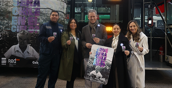 Junto con ello, desde este viernes buses con la imagen de la escritora chilena comenzarán a circular por distintas comunas de la capital. En total, serán más de 100 máquinas que tendrán incorporada esta gráfica con tecnología Windows Vision, la cual no interfiere la visión desde el interior del bus hacia afuera.