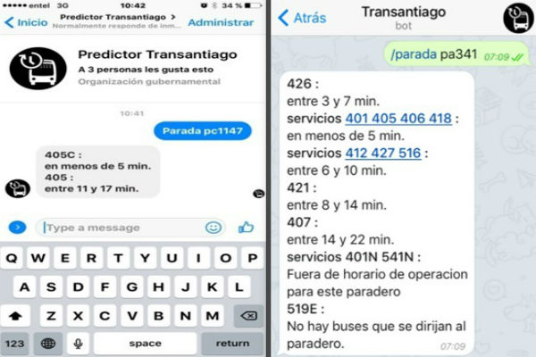 Dos de las redes sociales más populares del mundo serán a partir de hoy canales de información para que los usuarios puedan conocer el tiempo estimado para la llegada de buses del Transantiago. La ministra de Transportes y Telecomunicaciones, Paola Tapia, en conjunto con el director del DTPM, Guillermo Muñoz, dieron a conocer esta mañana la forma en que la ciudadanía podrá utilizar los servicios de mensajería móvil de Facebook y Telegram, para conocer información del transporte público capitalino.